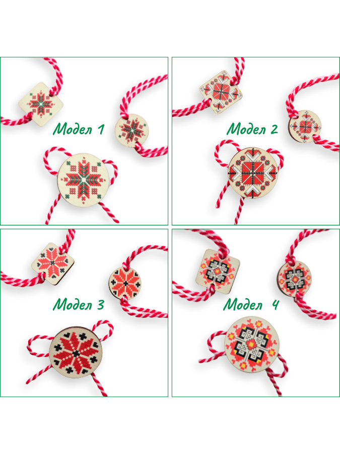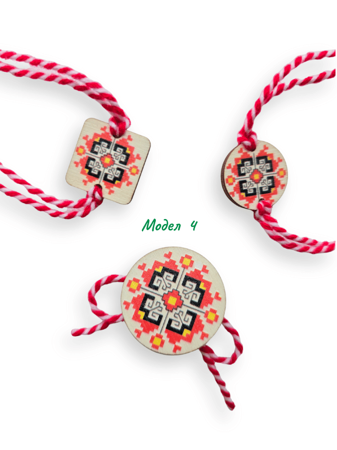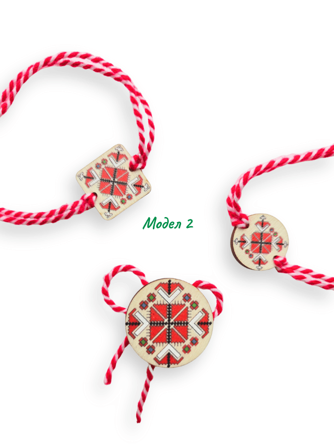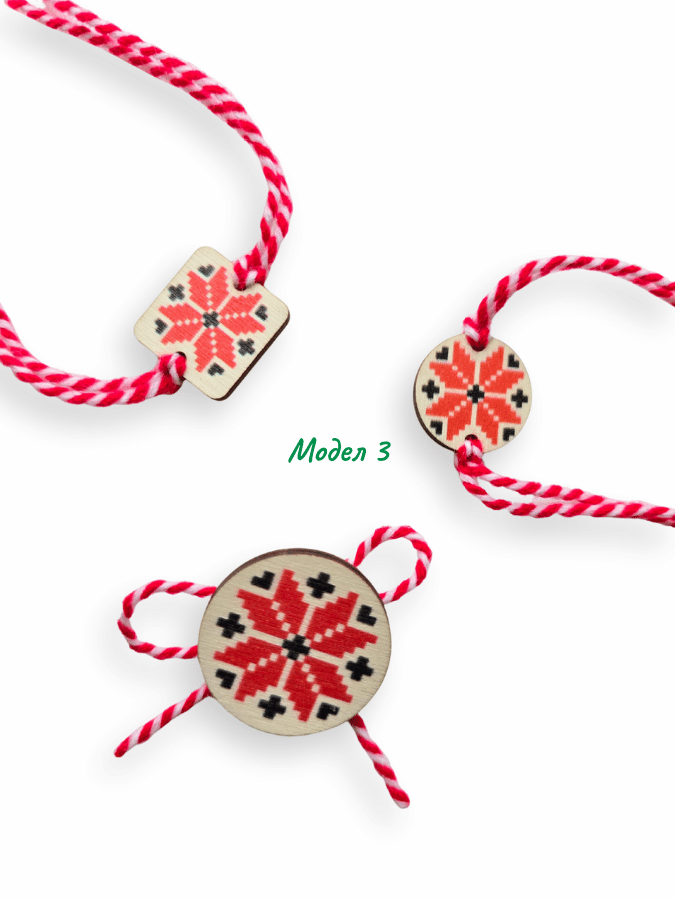Вземи комплект от 3 различни мартеници с мотив на красива българска шевици: една брошка и две за ръка.